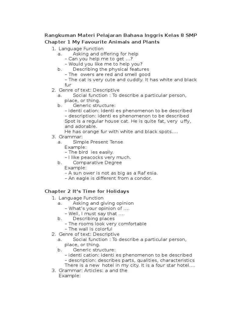 Overall rating of rangkuman materi smp matematika kelas 7 ,8 ,9 is 1,0. Materi un bahasa inggris smp. Rangkuman materi pelajaran bahasa inggris kelas 8 smp pada halaman ini disusun berdasarkan buku pedoman belajar bahasa inggris untuk kelas 8 smp yang diterbitkan oleh kementerian pendidikan dan kebudayaan indonesia. Kelas 7 inggris rangkuman materi semester 1 smp. Standar kompetensi memahami makna dalam percakapan transaksional dan interpersonal sangat sederhana untuk.